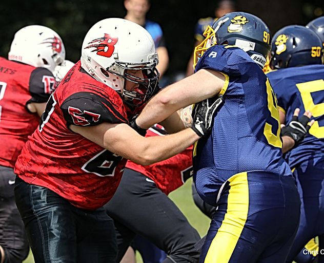 The offence started fast with a few quick strikes to Mancera for a pair of well worked receptions. Then followed up with the 1-2 punch of hard running from Baker and Isaacs. A massive 26 yard sweeping run by Isaacs which was called short of the goal line by the official set up the next Bobcats touchdown. On the 1 yard line the Bobcats rammed the ball home via the heavy work of Macdonald, the PAT blocked the score early in the 3rd quarter 0-16.